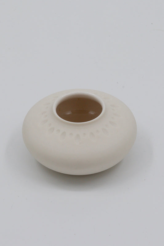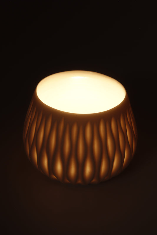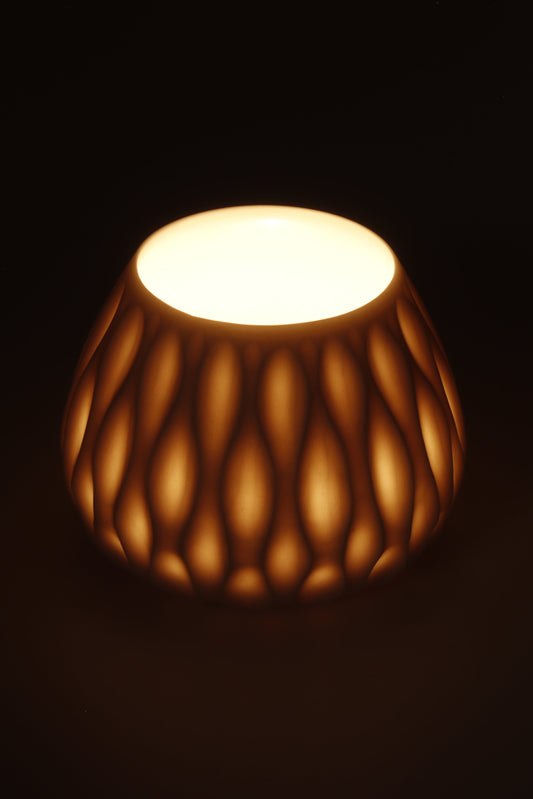 Handgedraaide porseleinen waxinelichthouder - gekerfd #47