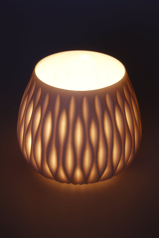 Handgedraaide porseleinen waxinelichthouder - gekerfd #47