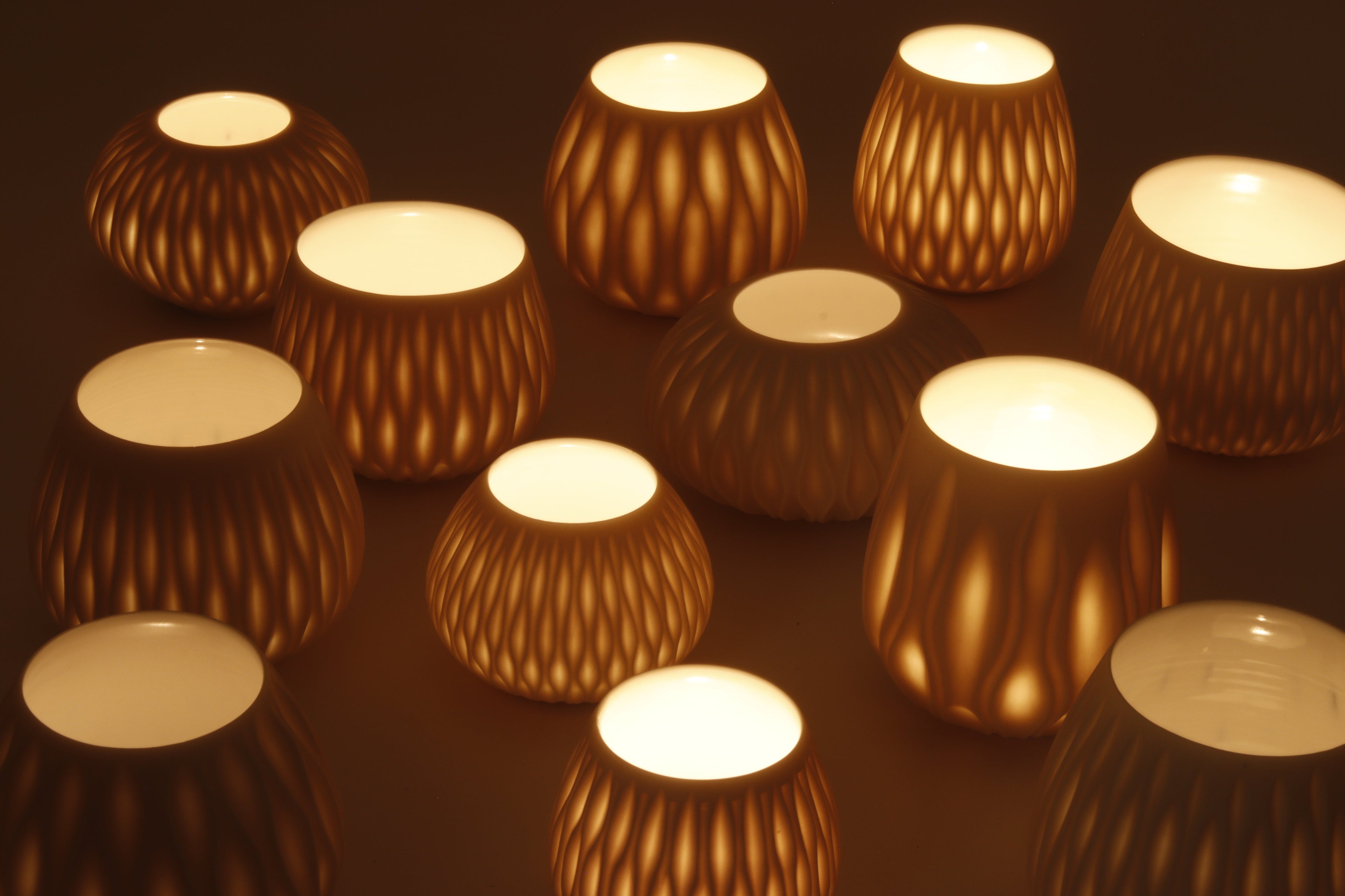 Deze porseleinen waxinelichthouders zijn gedraaid op de draaischijf en zodanig verfijnd ingekerfd dat het doorschijnend is. Daarnaast is elk handgekerfd stuk uniek.