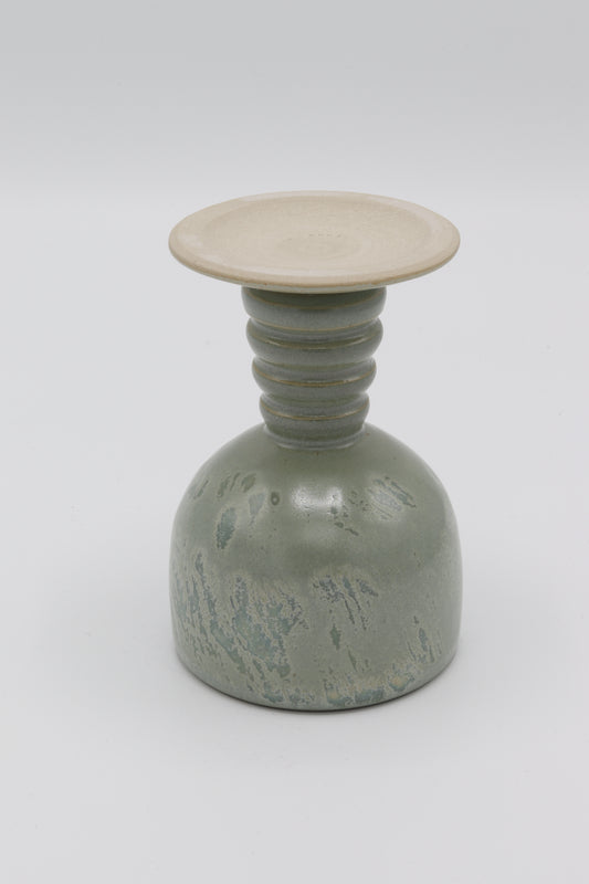 Handgedraaide porseleinen waxinelichthouder - gekerfd #42