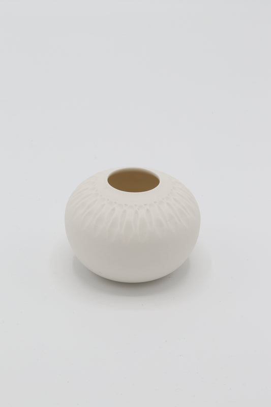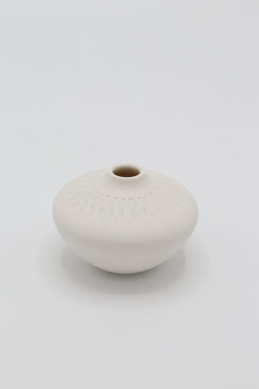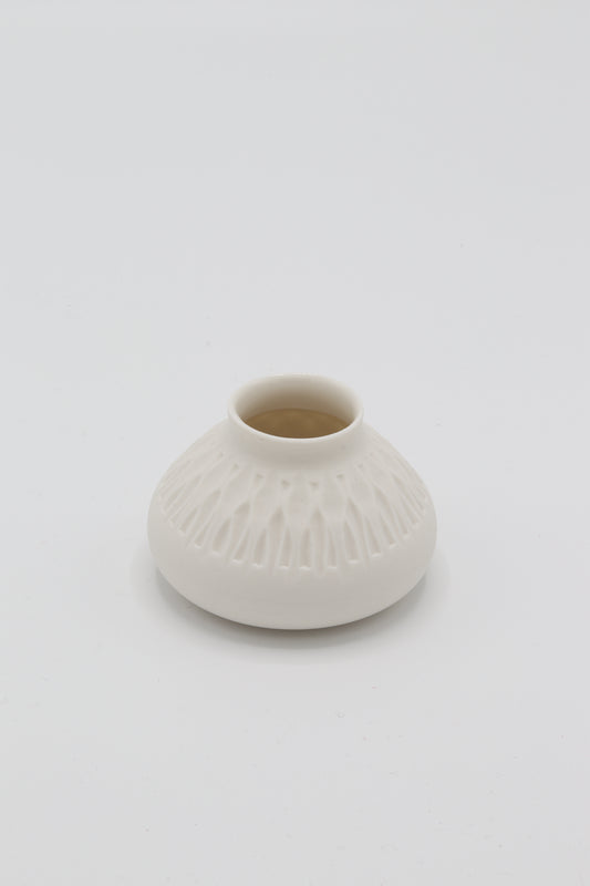 Handgedraaid porseleinen vaasje - gekerfd #32