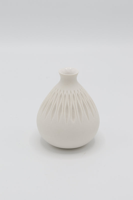 Handgedraaid porseleinen vaasje - gekerfd #33