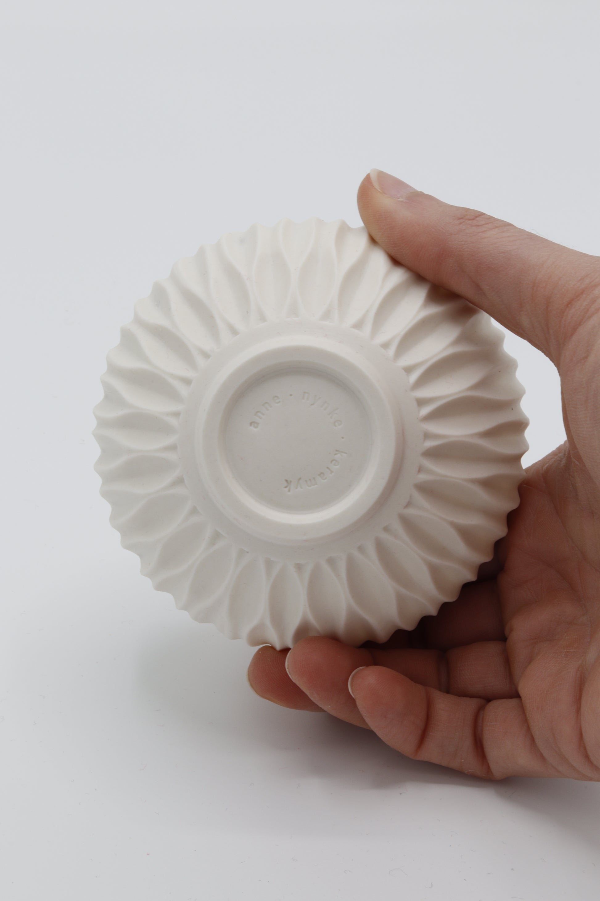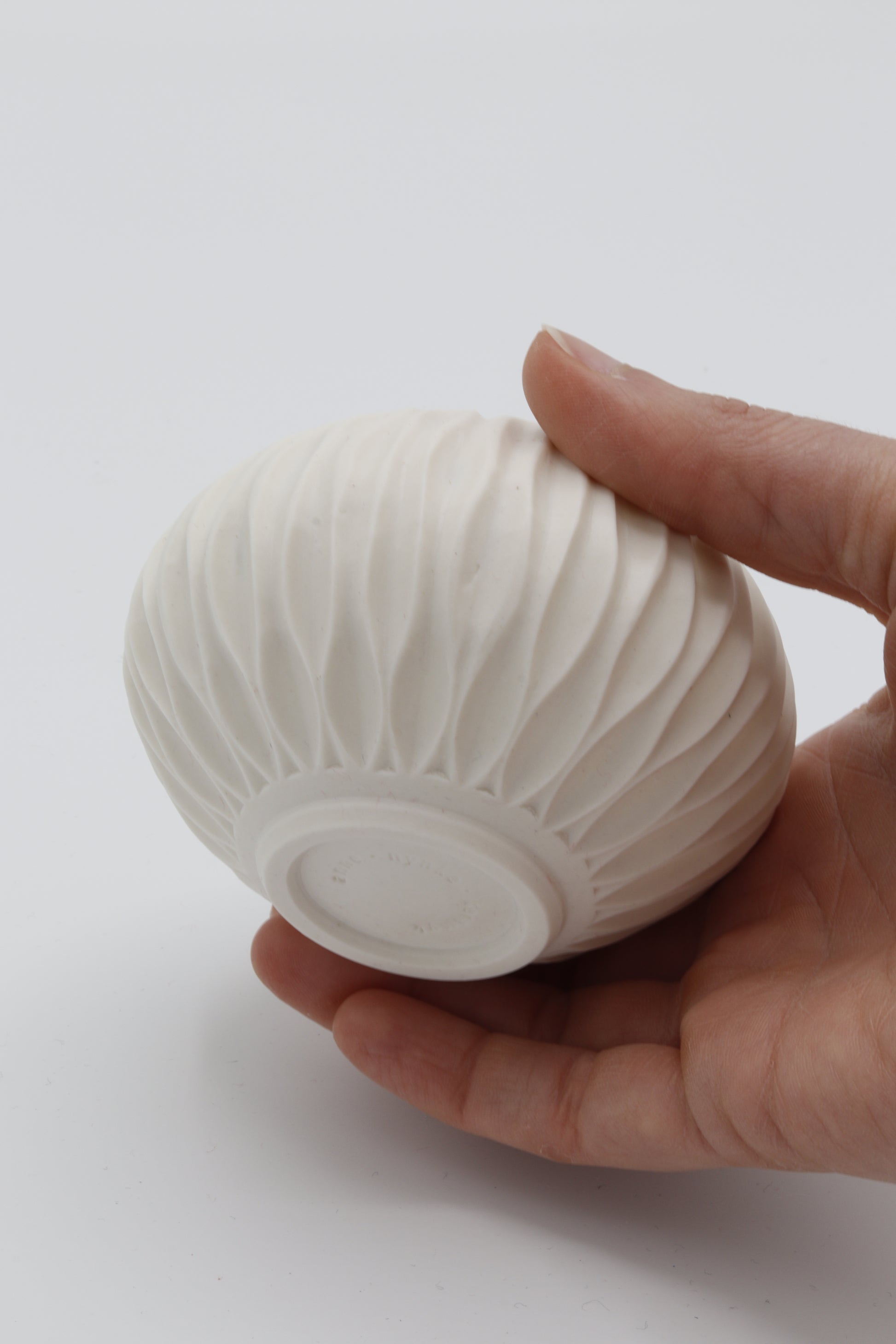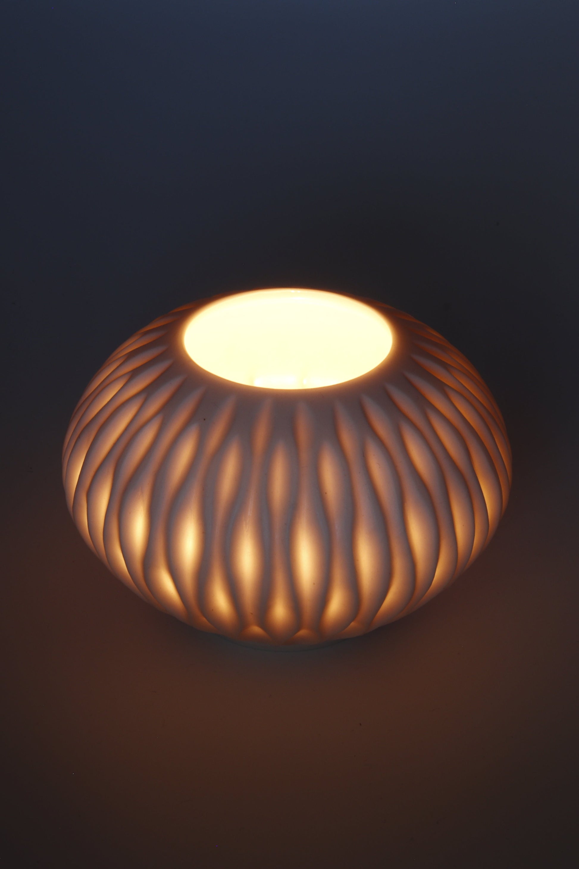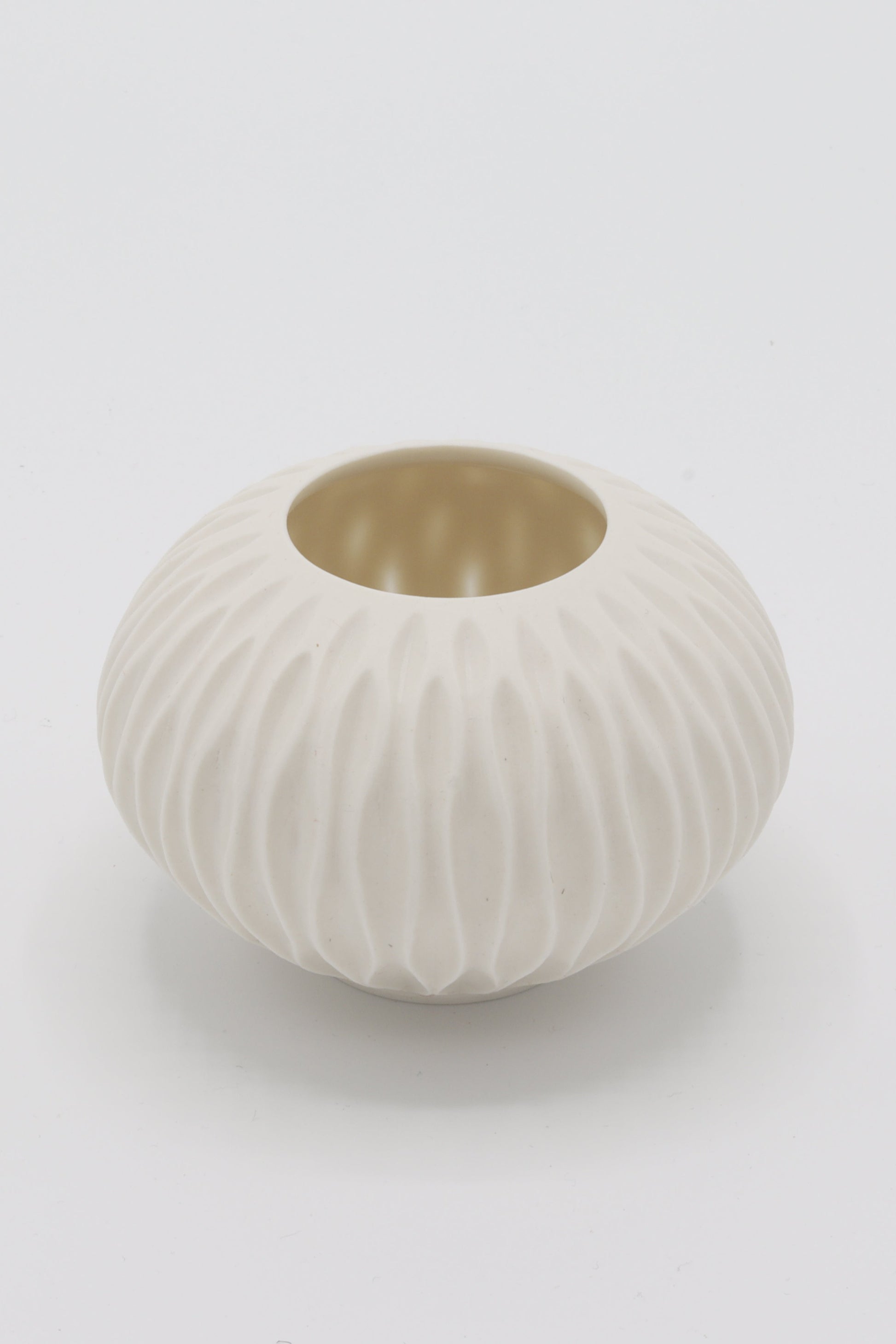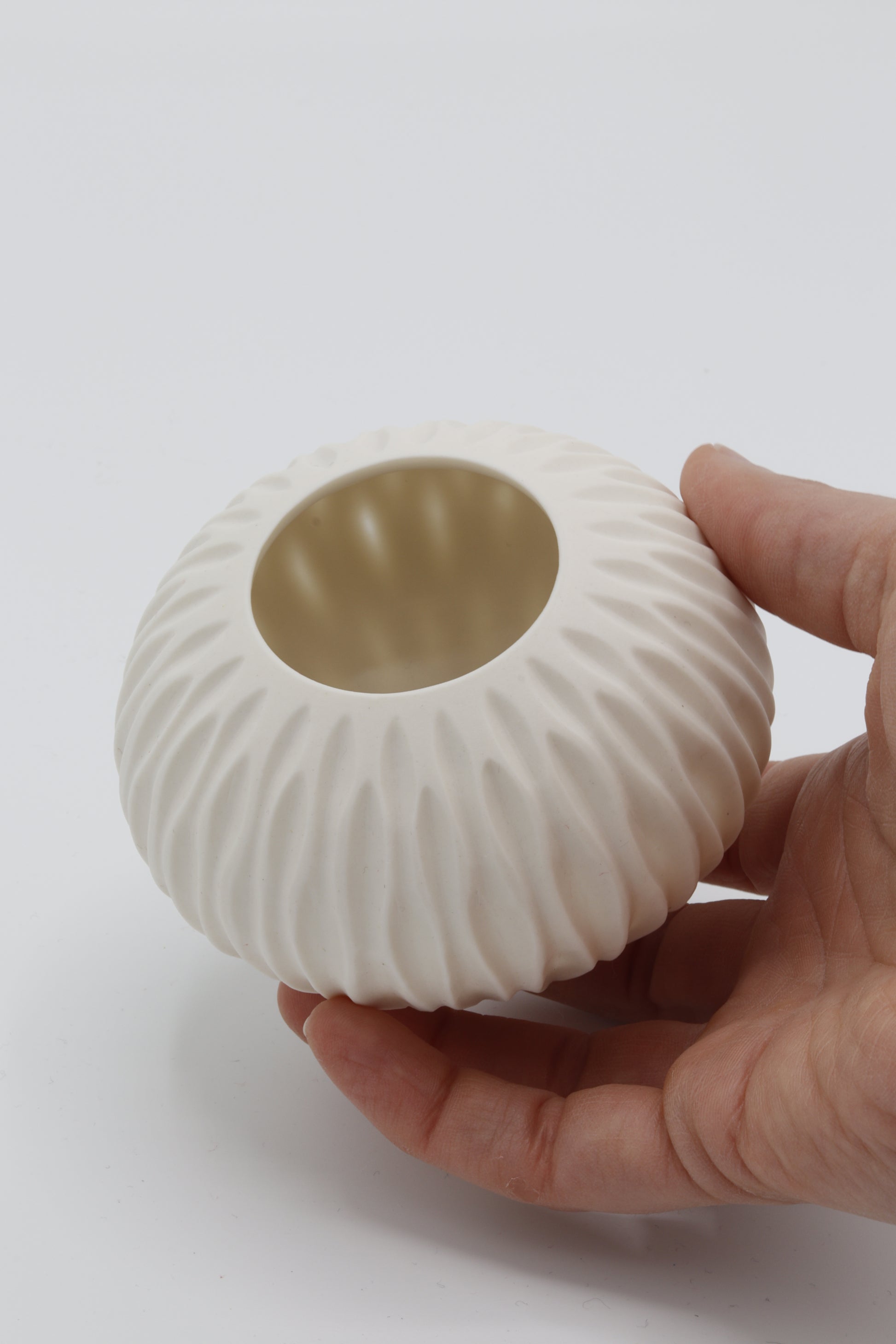 Handgedraaide porseleinen waxinelichthouder - gekerfd #39