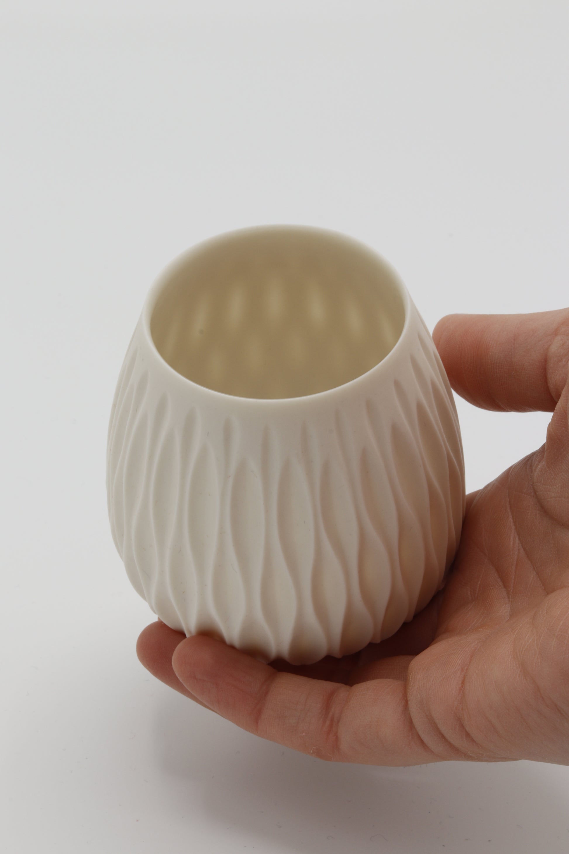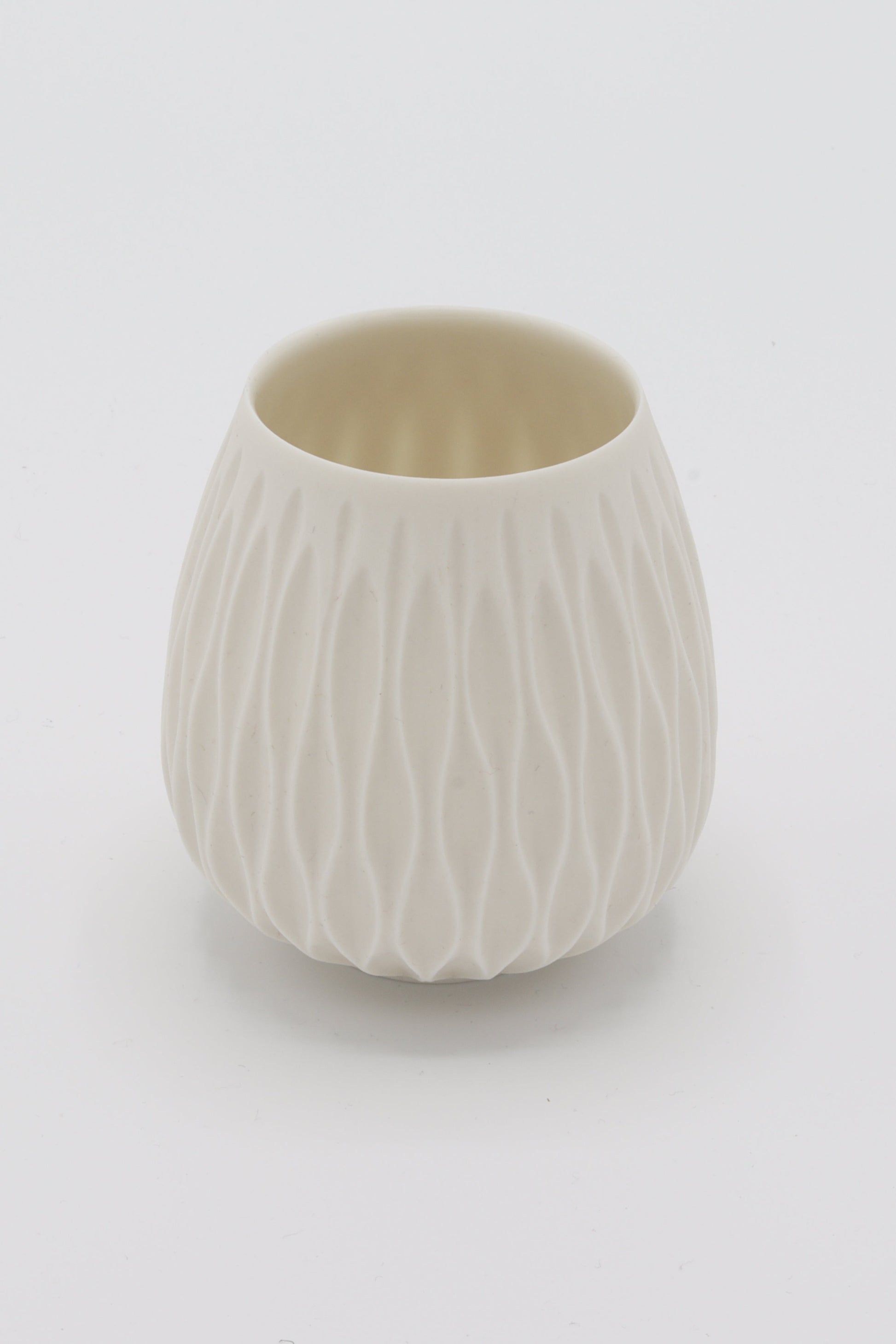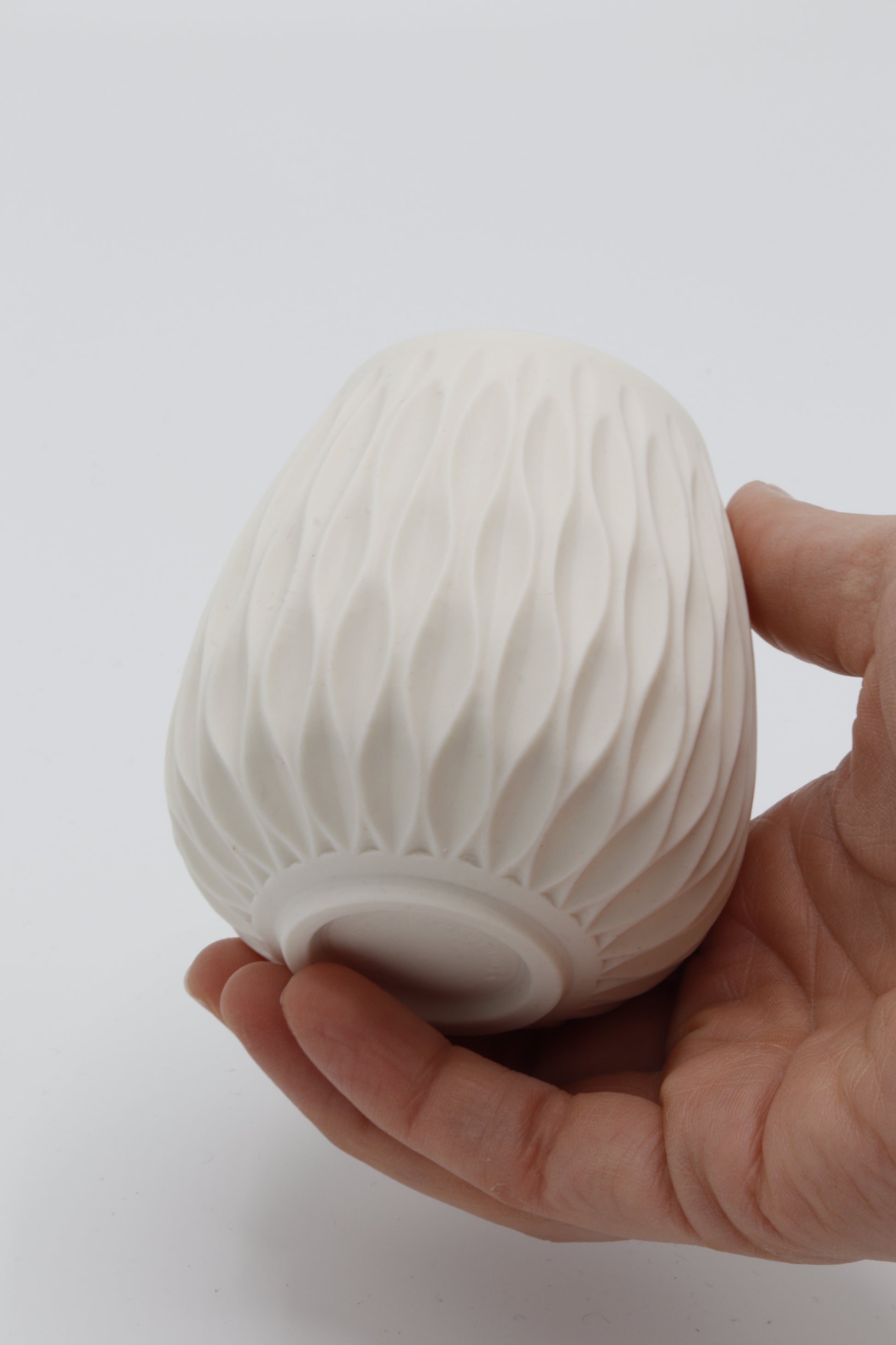 Handgedraaide porseleinen waxinelichthouder - gekerfd #41