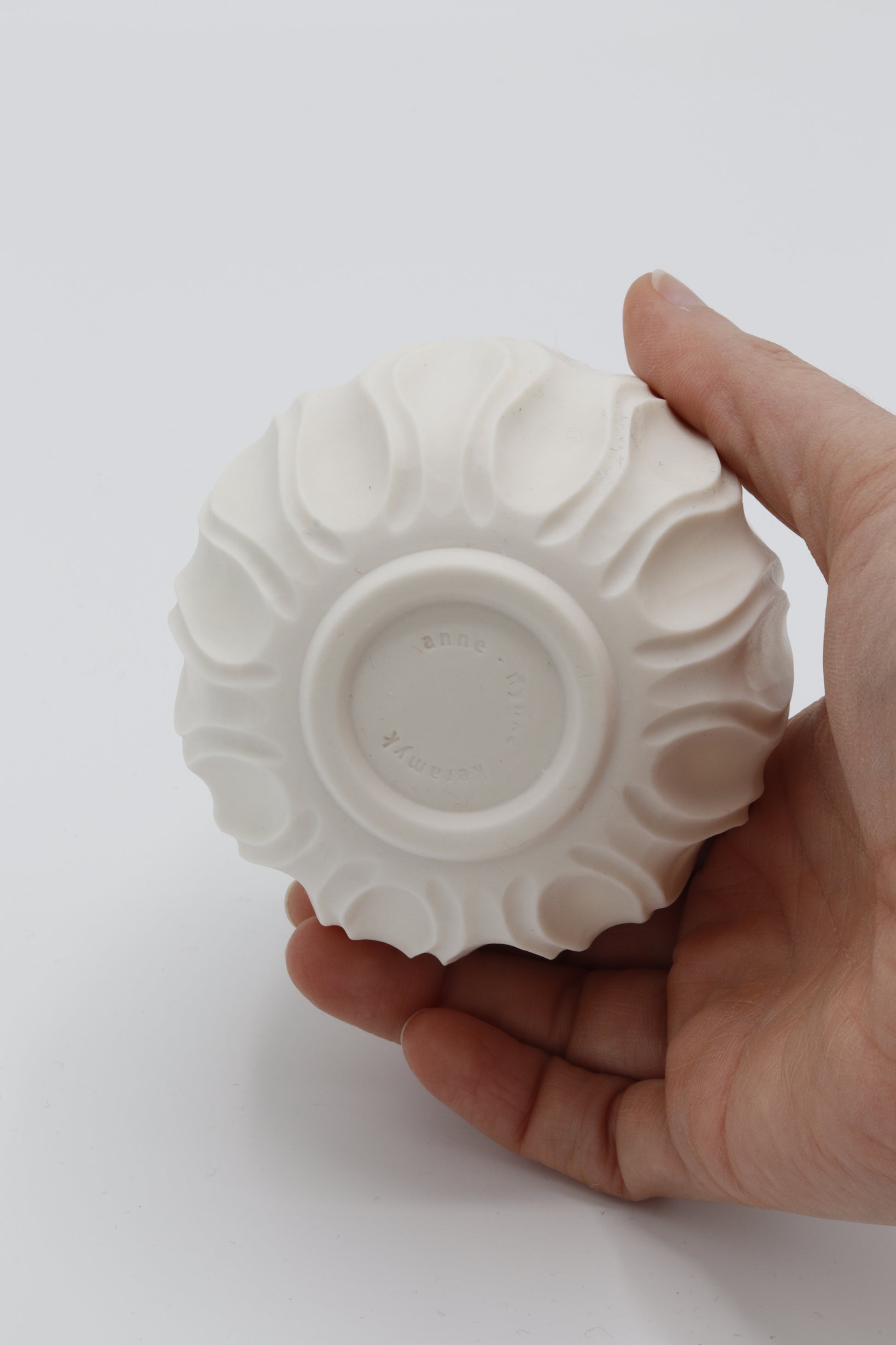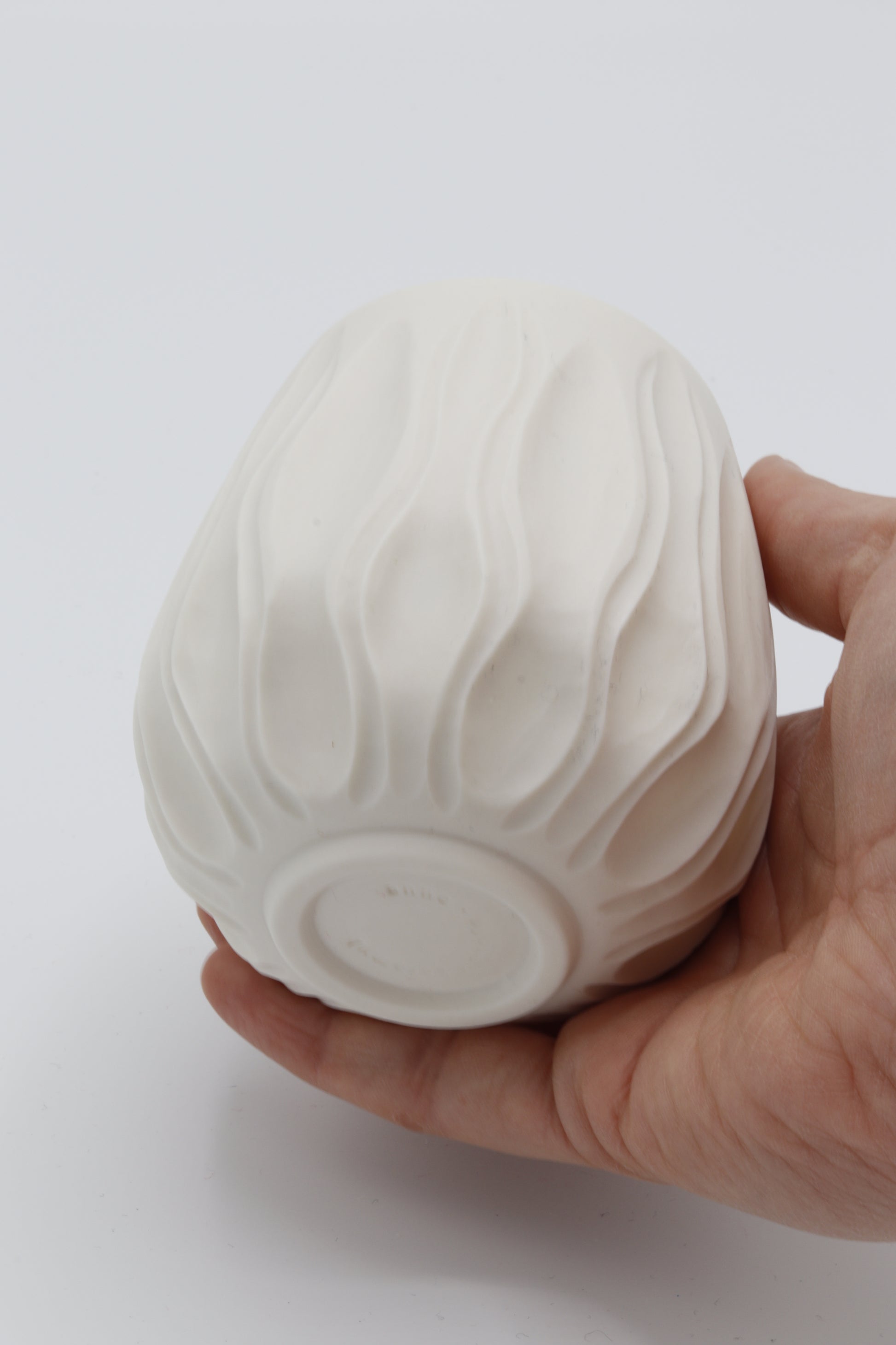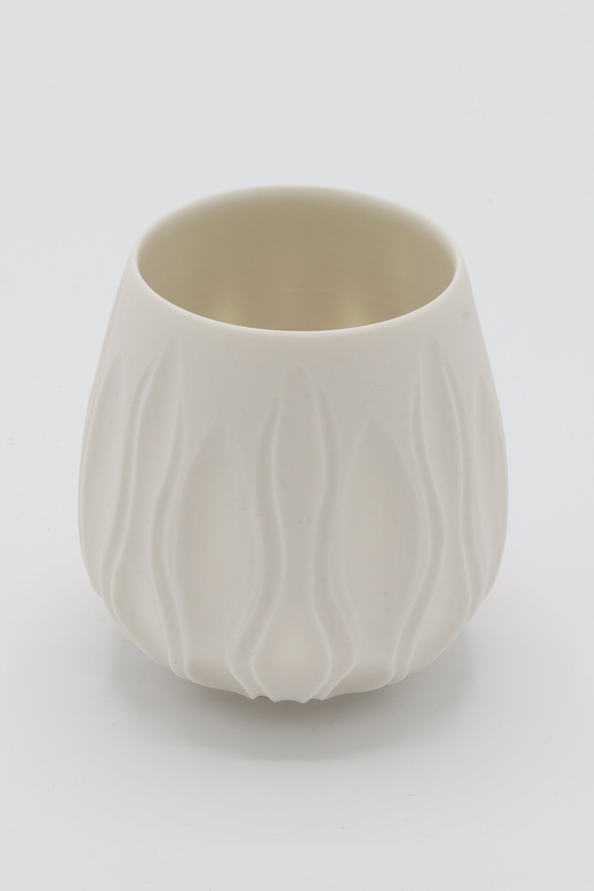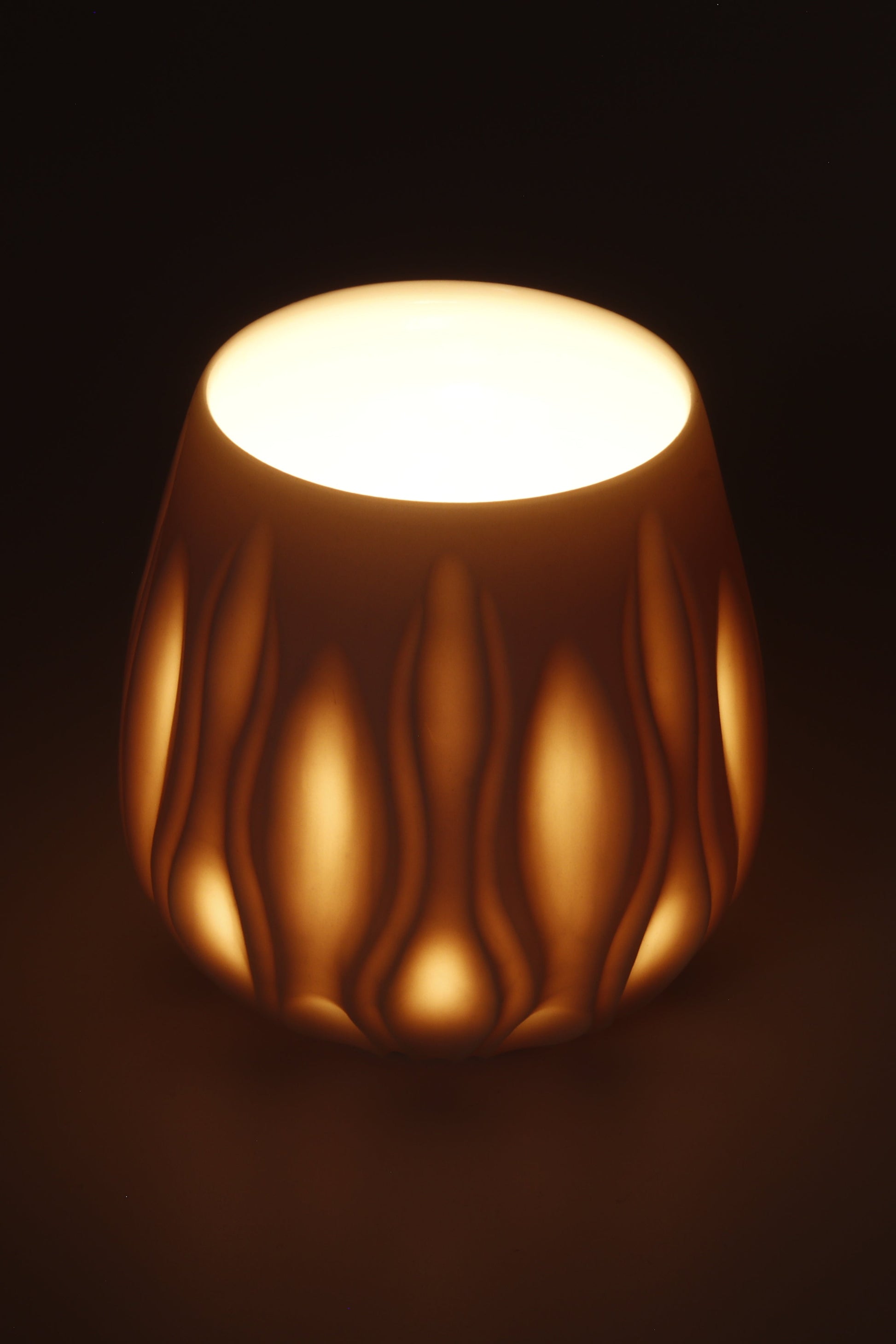 Handgedraaide porseleinen waxinelichthouder - gekerfd #44