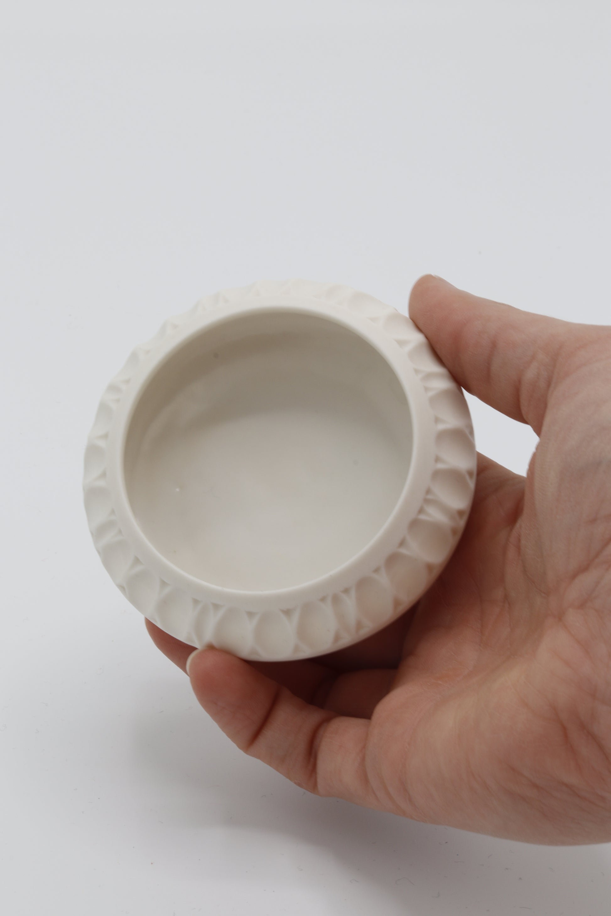 Handgedraaid porseleinen schaaltje - gekerfd #54