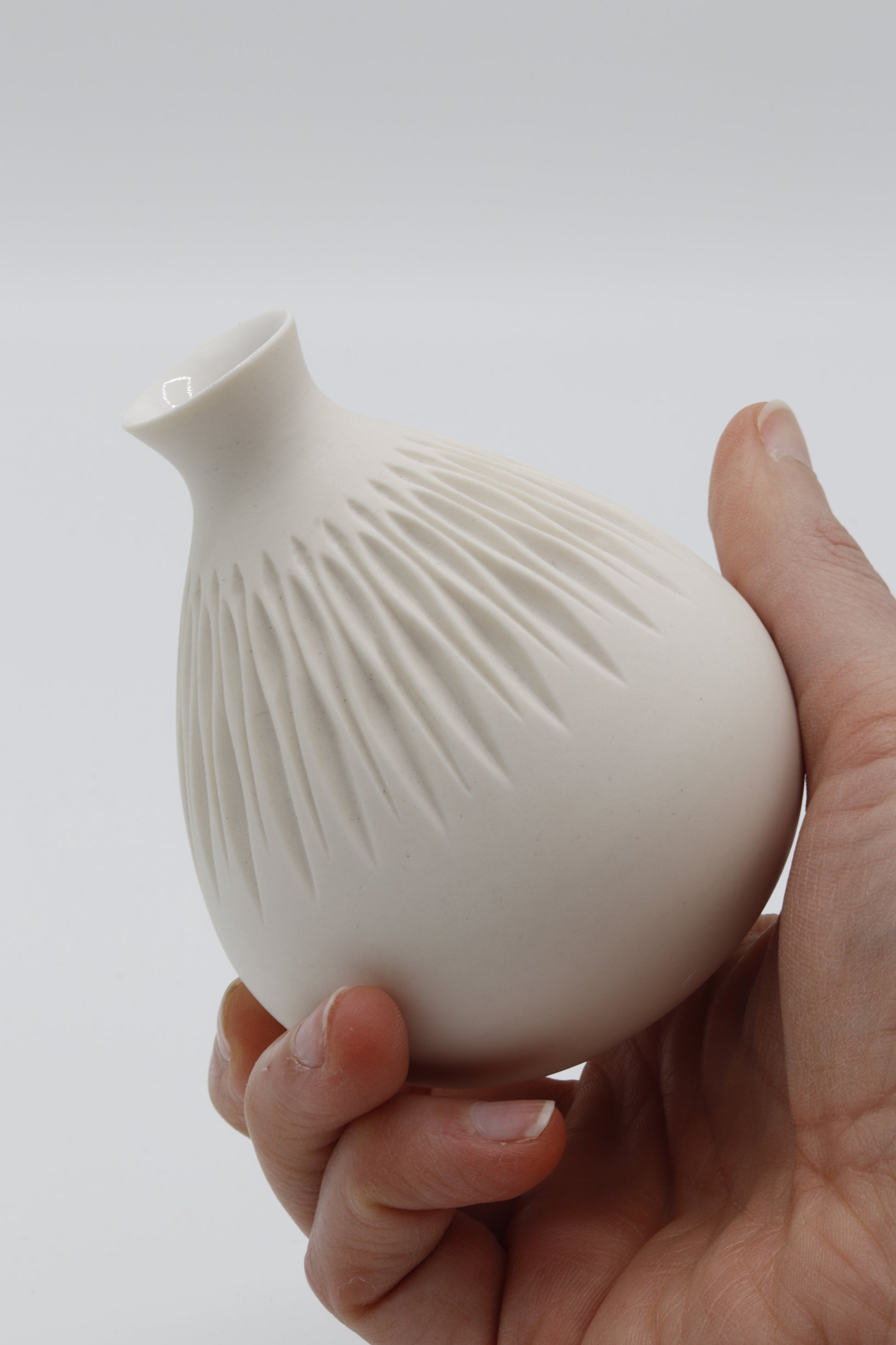 Handgedraaid porseleinen vaasje - gekerfd #61