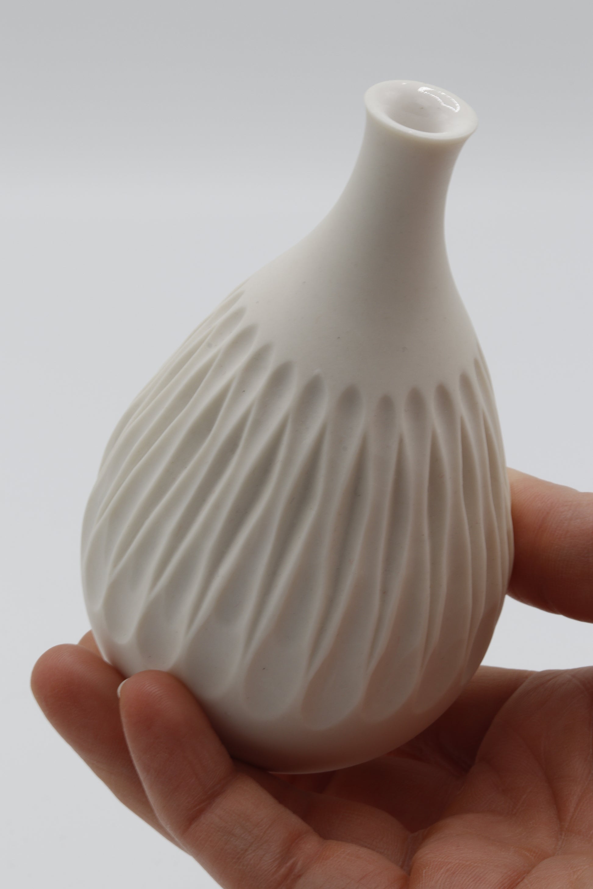 Handgedraaid porseleinen vaasje - gekerfd #64