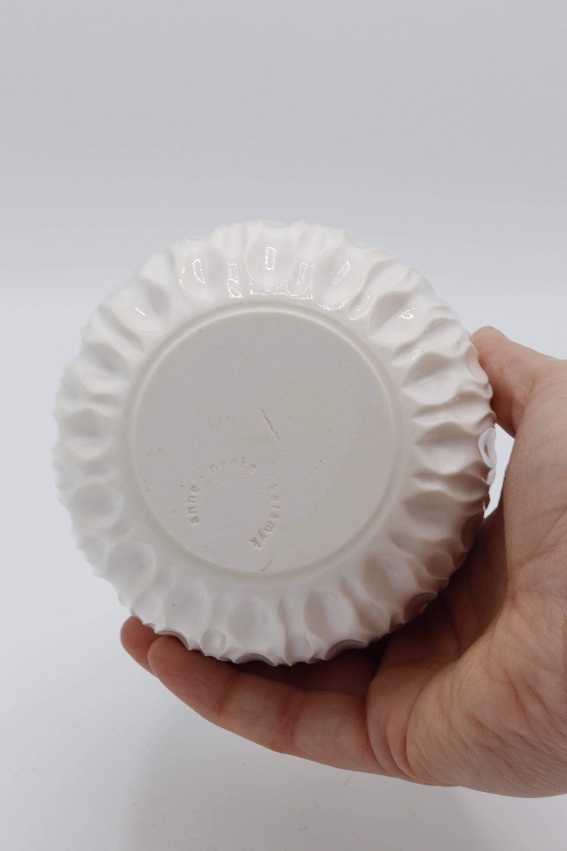 Handgedraaide porseleinen dekselpot - gekerfd #68